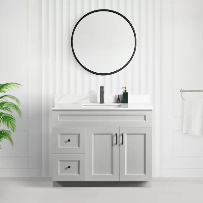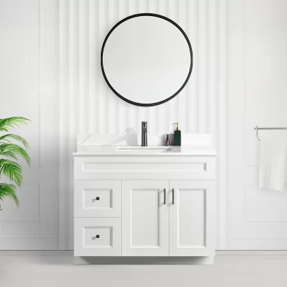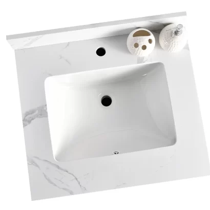- Coordinating Backsplash: Comes with a matching quartz backsplash.