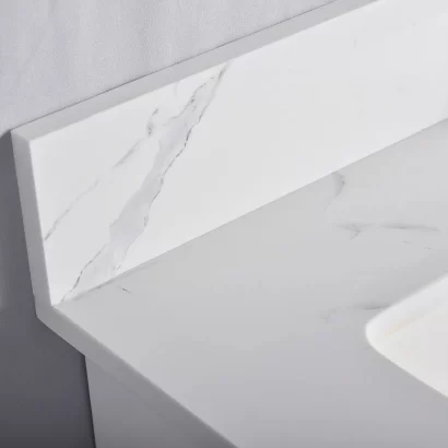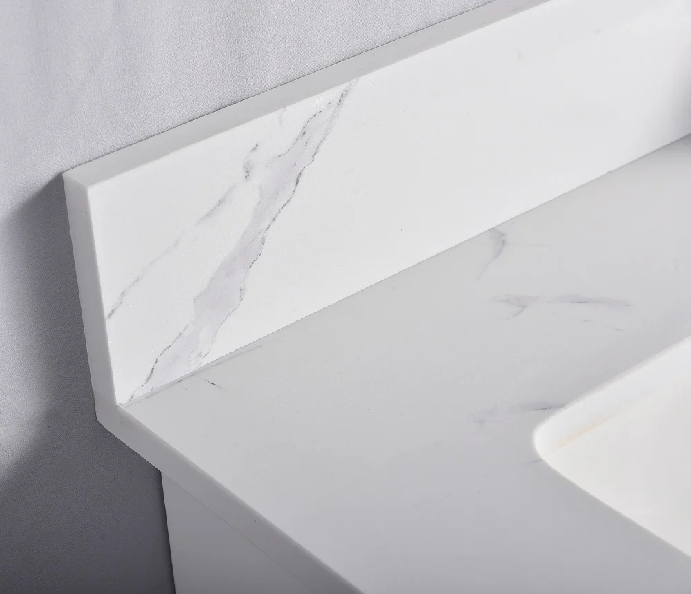 - Quartz countertop in Carrera or Pure White options