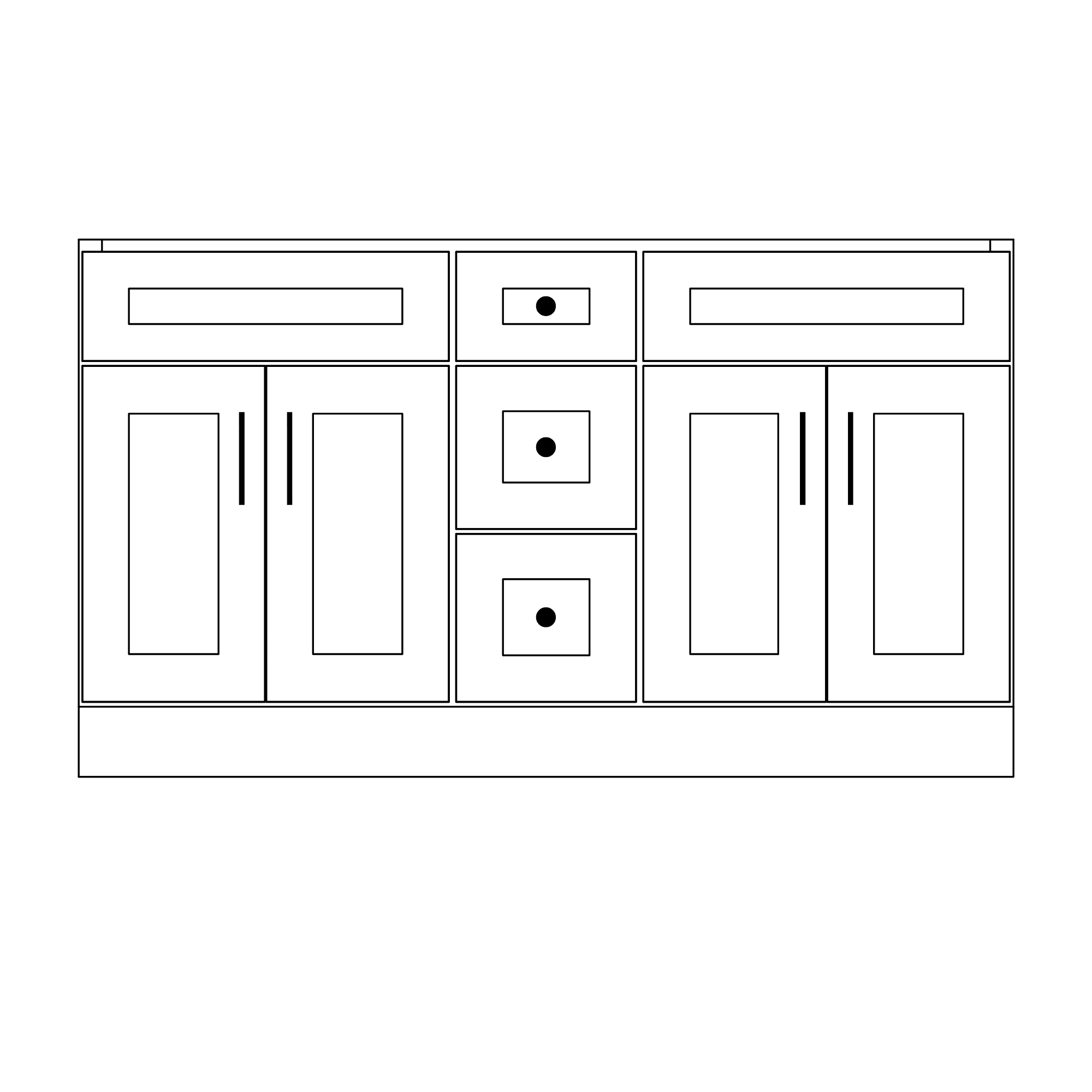 - Main Cabinet: 60″W x 34 1/4″H x 21 3/4″D