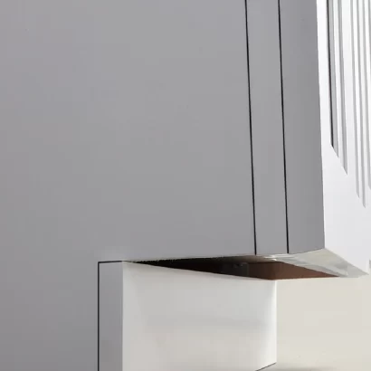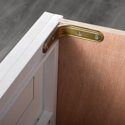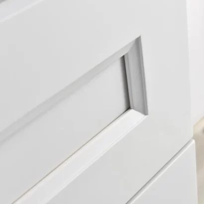 With its Shaker-style doors and clean lines, this vanity blends seamlessly into different decor styles. The durable MDF construction ensures longevity, while the soft-close drawers and doors provide a quiet and smooth experience. Available in white, grey, and blue, it allows you to choose a colour that complements your space.